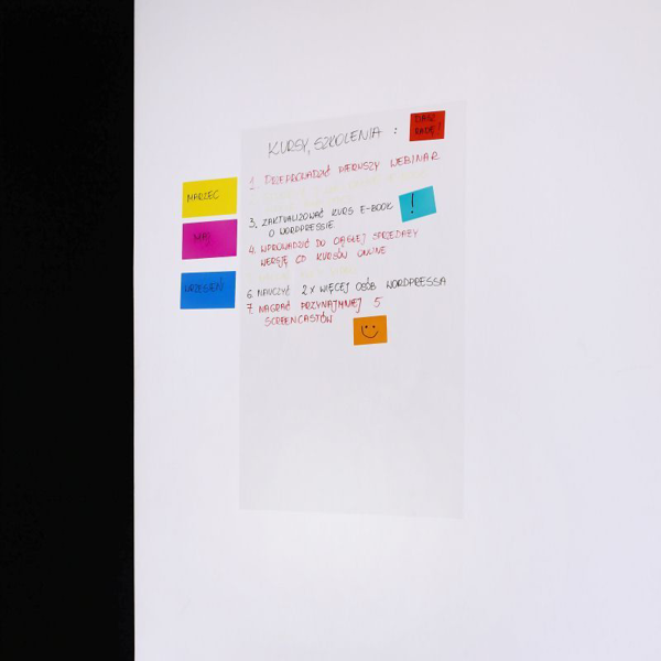 • Napište cokoliv, přiložte na jakýkoliv povrch v interiéru (zeď, dřevo, sklo, kov, plast, beton…), jednoduše posouvejte a opakovaně přemisťujte bez zanechání zbytků lepidla nebo poškození povrchu.