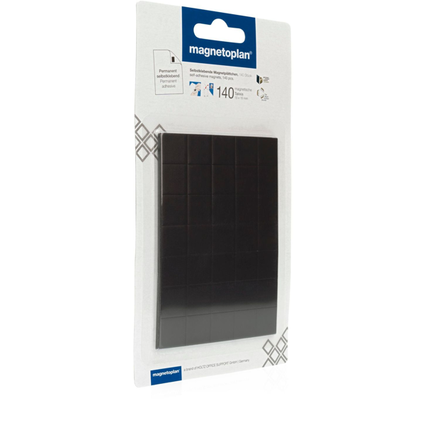 Samolepící magnety Magnetoplan Takkis, 140 ks velikosti 15 x 15 mm a tloušťky 0,75 mm. Nalepením samolepících magnetů na zadní stranu papíru, kartonu, fotky atp, vytvoříte magneticky přichytitelný objekt. Můžete jej pak připevnit na magnetickou tabuli, do magnetické vitríny nebo na flipchart. Výhodou je, že magnety Takkis umožňují vytvořit z vnějšku neviditelné magnetické přichycení. Obrázky připevněné pomocí Takkis lze snadno přemisťovat, všestranné využití ve škole, kanceláři, obchodě, dílně i doma.